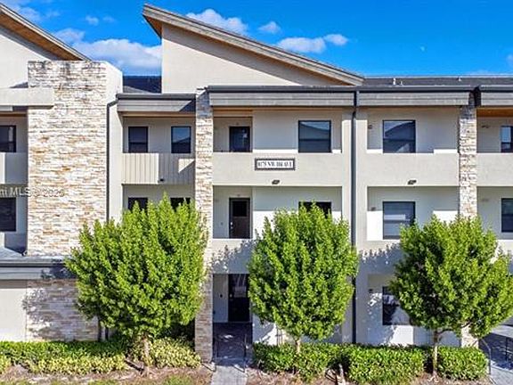 This like-new 2-bedroom, 2-bath unit in the gated community of Apex at Central Parc features an open design with a modern kitchen, large island, quartz countertops, stainless steel appliances, and in-unit washer and dryer. The home offers ceramic tile floors throughout, wood floors in the bedrooms, and a private patio with artificial grass. Convenient parking includes one assigned space plus plenty of guest spots. Residents enjoy access to Doral's resort-style clubhouse with a pool, kids splash park, gym, basketball and tennis courts, children's play area, BBQ area, spin and yoga studios, and more. Ideally located just minutes from Miami International Airport, CityPlace Doral, Dolphin Mall, and major highways.