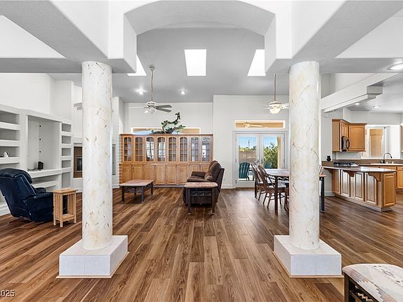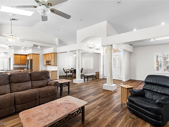 Live your dream lifestyle in this single-story retreat on a 1/2-acre cul-de-sac lot in NW/Lone Mountain. Step through a grand entry foyer into sunlit, open living spaces featuring new vinyl plank flooring, anchored by a spacious island kitchen with abundant cabinets and storage—perfect for entertaining. The great room with high ceilings, built-in bookshelves & a cozy fireplace adds ambiance for relaxed evenings. The oversized primary suite offers a sitting area, walk-in closet, and direct access to the back patio. Large secondary bedrooms feature walk-in closets and a shared Jack & Jill bath. Modern comforts include new slider & french doors, tankless water heater, water softener, oversized 3-car garage w/sink, gated RV parking/hookup. Outside, the huge yard offers endless possibilities—playground, garden, or outdoor oasis. Exceptional value gives you the freedom to make it your own. Close to shopping, dining, parks, and easy 95/215 access. Mortgage financing savings may be available.