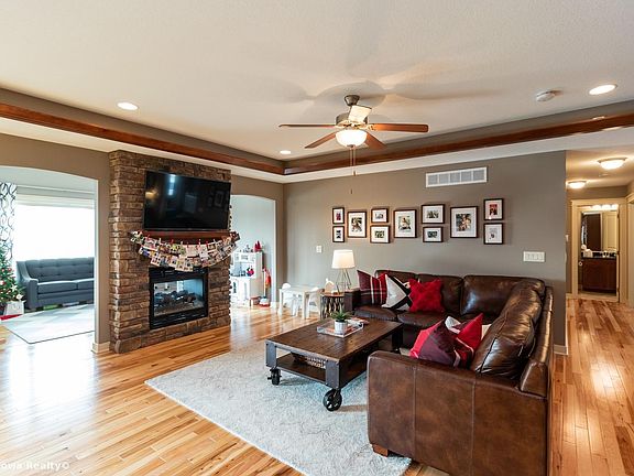 Fantastic ranch offers an unbeatable location on a quiet cul-de-sac street, plus an INCREDIBLE floorplan 4 season room featuring double-sided stone fireplace, beautiful trim package, & hardwood floors. Oversized .53 acre lot provides plenty of space for outdoor activities no close backyard neighbors Over 3200+ sqft of fin living area, spacious kitchen featuring under cabinet lighting, oversized granite island, pull-out shelves in pantry & S/S appl. Step into your Master bedroom tiled shower, double vanity & relaxing jet tub. Gather friends & family in the finished LL daylight windows--huge living room, wet bar, 4th bedroom & bathroom. Other features: Deck, tiled entry, tray ceilings, custom closet systems (2, custom blinds, craft room, terrific storage space, laundry folding counter & shelving, mudroom lockers, oversized 3 car garage epoxy floor & workspace. Close to JC mall, restaurants, bike trails, aquatic center, plus walk to Brookview elementary Call today