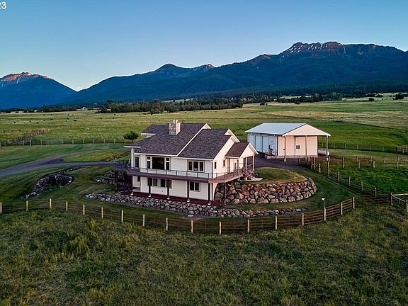 Location, location, location! Incredible 360 degree views of the Wallowa Mountains, Zumwalt Prairie, Wallowa Valley and the Seven Devils Mountains from this 15+ acre property. Pride in ownership is obvious in this well maintained expansive house with 4 bedrooms and 3.5 bathrooms on three levels. The main level includes livingroom, dining room, primary bed and bathroom, laundry, and attached one-car garage. Upper level has 2 bedrooms and one bath. Lower level includes office/den, family room, bedroom, bathroom, storage room and well water holding/pressure tank area. In-floor heat on all three levels controlled individually and heated by propane. Two propane fireplaces to enjoy as well as propane range and clothes dryer. Deck is also fitted for your propane BBQ. Hot tub power and structural support on covered deck outside primary bedroom. Large detached garage includes three bays with automatic doors, tack shed, game cooler and lots of upper storage area. Lower barn includes covered stalls, small shed and large covered hay storage. Holding pens and pastures are ready for your livestock. A creek meanders through the property and serves as irrigation water for the lawn. Pastures have high water table, non-irrigated and are green most of the year. This is a GREAT VALUE for the price. Don't let this one get away!