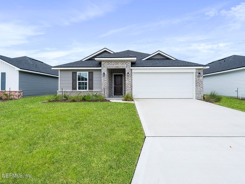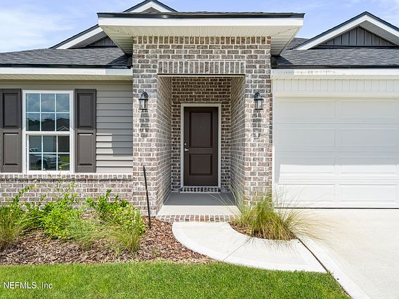 Welcome home to this lovely 3BD/2BA new construction. This home features a grand entrance that leads into a large great room with vaulted ceilings. The kitchen features a prep island overlooking great room and a wonderful amount of cabinets along with a pantry closet. This floor plan has a dining area that extends the kitchen space and leads out to a lanai. The primary offers a large bedroom and a huge walk-in closet. Exterior features architectural shingles, brick front and coach lighting. Our interior finishes include 5 1/4 baseboards, recessed lights, ceiling fans in great room and owner's bedroom. Save thousands of dollars! All Closing costs paid with use of approved lender (excluding escrow & prepaids). Low HOA no CDD Fees