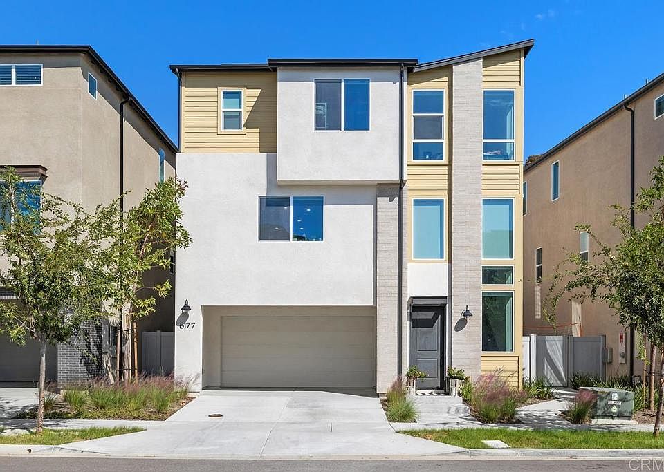 Citrine at 3Roots – Sorrento Mesa: Modern living awaits in this newly constructed Citrine residence, set on a premium-size lot with a view of the canyon hill reserve (open space) within the desirable 3Roots master-planned community. Offering 4 spacious bedrooms, 3.5 baths, and 2,316 sq. ft., the home’s contemporary floor plan is designed for comfort and function. Sun-filled interiors showcase upgraded flooring, quartz countertops, custom cabinetry, and premium stainless steel appliances throughout the chef-inspired kitchen. On the entry level, a versatile suite with an ensuite bath provides the perfect space for guests or a dedicated home office. The second floor opens to expansive living and dining areas, seamlessly connected to a covered balcony—ideal for entertaining or enjoying California’s indoor-outdoor lifestyle. The owner’s suite is a restful retreat featuring a luxurious bath with a soaking tub and a private balcony. Continuing, there are two spacious secondary bedrooms and a full bathroom with a double sink vanity on the same floor. Additional features include a two-car garage and drought-tolerant landscaped grounds. Eco-friendly living with rooftop solar, Smart home technology, integrated air filtration system, providing sustainable energy and long-term savings, and Ring security. Residents of 3Roots enjoy access to an exclusive array of amenities: a cutting-edge fitness center, resort-inspired pool, multiple parks, playgrounds, sports courts, and scenic walking trails throughout the community, reflecting a commitment to wellness and convenience. Perfectly positioned in Sorrento Mesa, this home offers quick access to area beaches, shopping, dining, and major employment centers. Contact today for a private showing and make this exceptional Citrine home your next address in San Diego.?