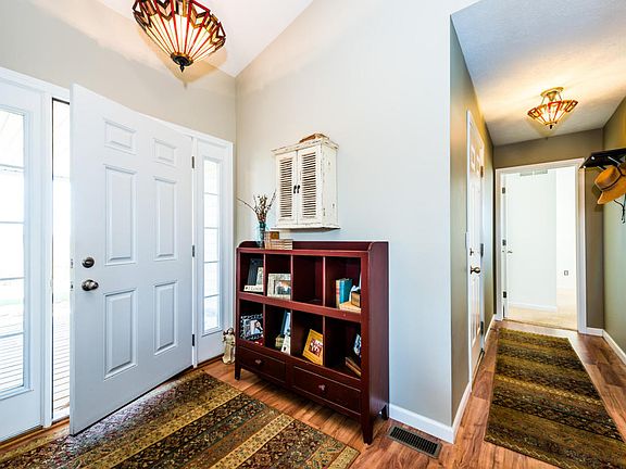 NEARLY NEW, this open-concept, 3 bed/2 bath charmer boasts plenty of space to roam and to enjoy the peace, quiet, and beauty of the country-side splendor. Placed on just over an acre, location is key as it is a short drive to many amenities and expressways in every direction. Views of orchards and vineyards as you sit and relax on any number of porches and outdoor spaces perched atop a beautiful rolling hillside. Single-story living is a breeze with a main level master suite decked out to the hilt and a main level laundry room nearby. The lower level offers an immense quantity of storage with custom built shelving AND the greater portion available for your finishing including nine foot ceilings and an egress window. To top it off, the property offers a 30 x 48 pole building