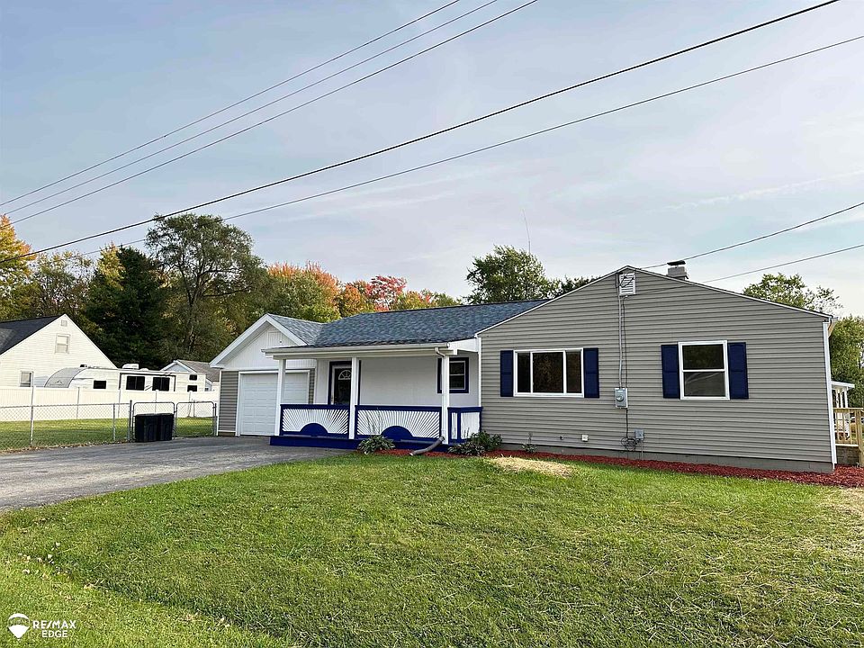 Very nicely remodeled four-bedroom, one-and-a-half-bathroom split ranch home, conveniently located across the street from Mt. Morris High School. This home boasts a beautiful oak kitchen, with a vaulted wood ceiling. The large living/dining area gives plenty of room for the whole family. Good sized Primary Bedroom features 2 closets, with direct access to the main bathroom. The half bath serves the 3 other bedrooms just around the corner from the primary bedroom. The first-floor laundry saves from those trips up & down the stairs. The large fenced in back yard is great for the kids, pets, etc. There's a large shed for storing the extras. Basement has been waterproofed for dry storage, with a new water heater and updated furnace. The finished garage shows the extra detail taken in the overall quality of the remodel.