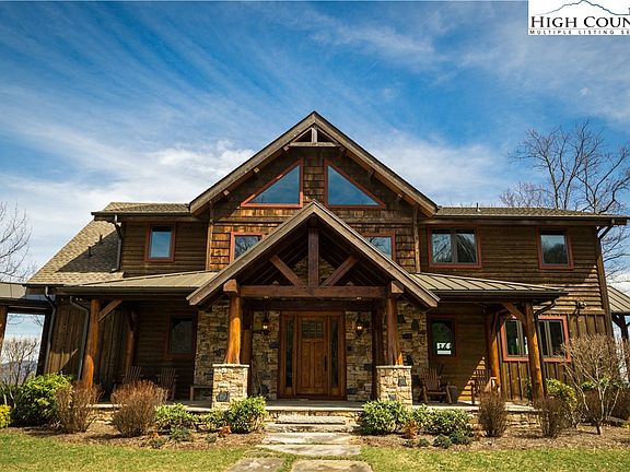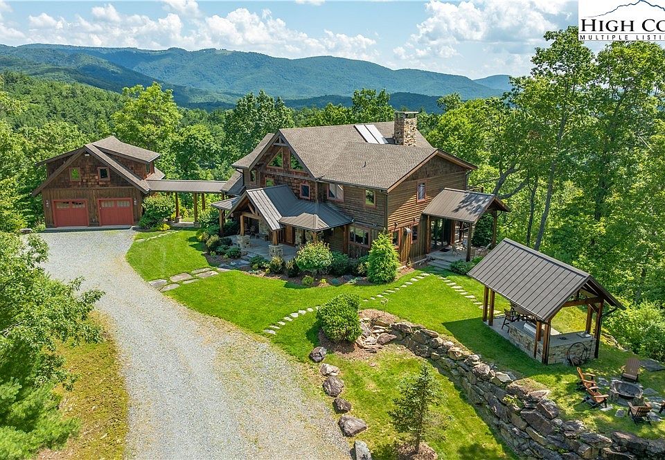 Nestled just ten minutes from the charming town of Blowing Rock, this exquisite luxury 3-bedroom 3.5-bath custom timber-frame lodge with 4 car garage including studio suite with murphy bed, kitchen, balcony, and full bathroom above the garage. The home presents breathtaking panoramic views of the Blue Ridge Mountains built on a 12 acre lot and part of a 110 acre subdivision called Bailey’s Creek with only 7 homesites.