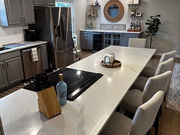 Large island seatingLarge quartz countertopsExpansive yard spaceCorner lot