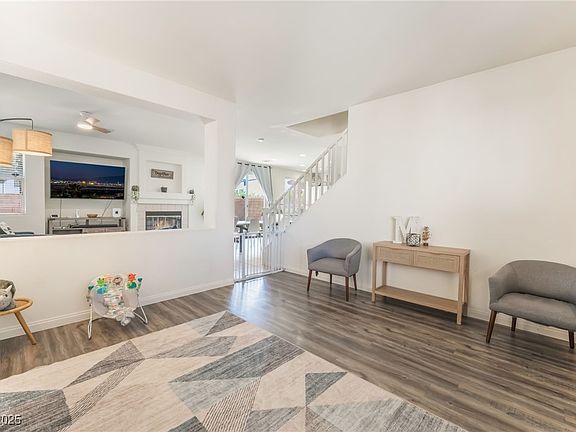 Discover this GEM in the Monaco community, ideally located near shopping, dining, parks & community center. This spacious 4-bedroom,3-bathroom home features an open and inviting layout on the first floor, complete with NEW vinyl flooring and separate living & family rooms, a cozy fireplace, and built-in TV niche. The kitchen and dining area seamlessly flow into the family room and include a center island, pantry, tile flooring, and recessed lighting. A convenient laundry room is located just off the kitchen. Enjoy easy access to the backyard through a large sliding glass door, and take in peaceful views through the kitchen window. The private backyard offers turf and a patio ideal for soaking in Las Vegas sunsets. Upstairs features new vinyl floors throughout. Primary bedroom with ceiling fan, offers a walk in closet and large shower. LARGE second bedroom with 2 closets connects to hall bathroom. Third bedroom has a walk in closet. This sure feels like home; make it yours today!