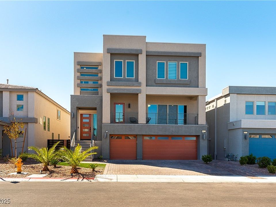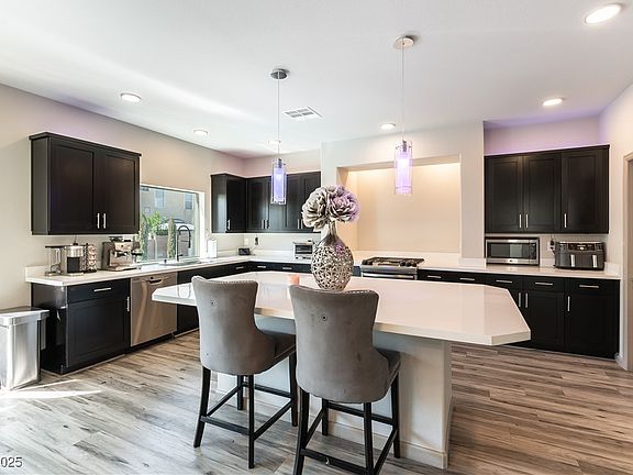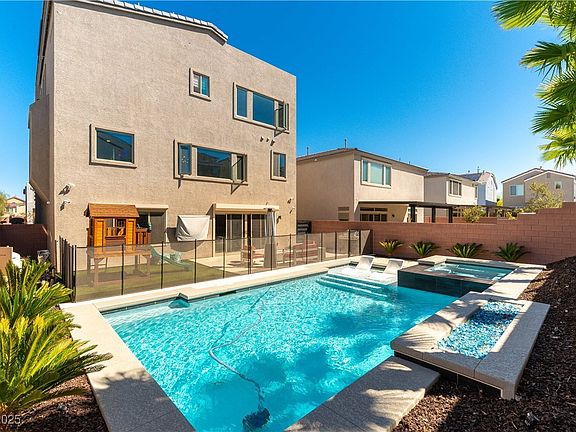 This exquisite three-story modern home epitomizes luxury living, integrating design with unparalleled comfort. Upon entering you'll be greeted by an expansive open-plan living & dining area, a Chef's delight gourmet kitchen equipped with top tier SS appliances to include a sub-zero style refrigerator, granite counters, breakfast bar, island, gas cook-top range, ebony finish cabinets, recessed lighting, and a garden window bathed in natural light, 5 spacious bedrooms, 3.5 baths, 3 car gar, & 4,000+ sqft of living space, wood plank style laminate flooring throughout most areas. The living room features trey ceilings , electric fireplace, double sliders & balcony w/exceptional city views. The lower level family room features an electric fireplace, large bedroom, upgraded bath w/marble shower & glass surround. Double sliding doors lead to a resort style oasis with fenced in pool/spa, patio & dog run! A rooftop deck w/panoramic mountains & city strip views! *Upgraded security shutters $12K