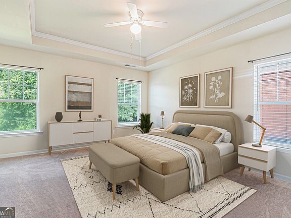 Turn-Key End-Unit Townhome in an Unbeatable Lawrenceville Location! Perfectly positioned near Sugarloaf Mills, The Mall of Georgia, Hwy 316, and I-85, this Move-In Ready Townhome offers exceptional convenience paired with comfortable, low-maintenance living. The Open Main Floorplan is ideal for both everyday living and entertaining, featuring a Light-Filled Family Room with a Cozy Fireplace and Sliding Glass Door that opens to a Private Patio Retreat. The adjacent Dining Room flows seamlessly into the Kitchen, complete with Oak Cabinets, a Stone Backsplash, Breakfast Bar, and ample counter space. A main level Half Bath adds everyday convenience. Upstairs, the Roommate-Style Floorplan offers privacy with two generously sized bedrooms each with its own Private Ensuite Bathroom and Walk-In Closet. The Primary Suite impresses with a Tray Ceiling, Dual Vanities, a Soaking Tub, and a Separate Shower. Enjoy resort-style living with Community Amenities including a Clubhouse, Pool, Playground, Dog Area, and Scenic Walking Trails. Don't miss your chance to own this end-unit gem in one of Lawrenceville's most convenient locations!