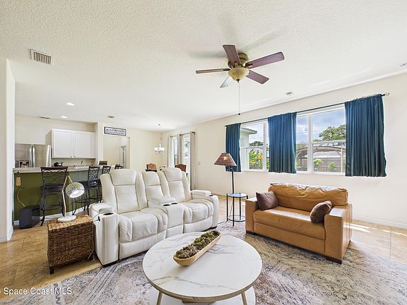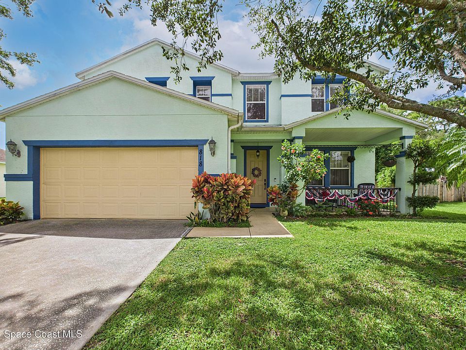 Welcome to this inviting 2-story Lockmar home, perfect for families seeking comfort and style. The first floor features easy-to-maintain tile throughout with spacious living and dining areas, ideal for gatherings or everyday living. Upstairs offers oversized bedrooms with engineered hardwood, ample closet space, and a convenient laundry room. The primary suite boasts a soaking tub and separate shower. 2 Full Bathrooms upstairs and 1/2 bath downstairs. Enjoy the fully fenced backyard with pergola and shed. Recent updates include a 2023 roof, storm shutters, and irrigation system. Washer and dryer included. NO HOA. Centrally located in a peaceful community with easy access to I-95, Palm Bay Rd, Malabar Rd, and Emerson. Close to shopping, dining, parks, and schools including Lockmar Elementary, Southwest Middle, Palm Bay Magnet Senior High, and Eastern Florida College.