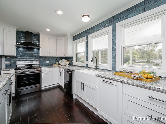 This spacious home has been transformed into a modern beauty! The 2018 renovation left no surface untouched... roof, mechanicals, electrical, kitchen, baths, flooring, lighting and MORE! Set in a private Glen Ellyn location among new high-end construction, plus respected GLEN ELLYN schools. Dark hardwood floors run throughout the main level, with the kitchen centrally located between the living, dining and family rooms. White cabinets, granite counters, black SS appliances and teal backsplash blend contemporary with classic design. The 8x4 island and spacious dining area are perfect for entertaining. First floor bedroom/office and full bath. Upstairs the master bedroom includes sitting area, WIC and lux bath. Two addt'l bedrooms share the remodeled hall bath. The heated garage features mudroom area and opens to the bonus rec space with lux vinyl floor & 12' ceiling. Timeless front porch, Unilock paver driveway and walk, and expansive back paver patio on .6 acres. Stunning!