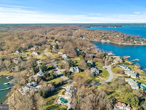 Nestled on a peninsula sided by Clements and Brewers Creeks in the vibrant water community; Downs on the Severn, this Annapolis home offers a very special lifestyle. A rare and exceptional community offers two marinas on waters extending into the Severn River and Chesapeake Bay. In addition to marinas, slips and small craft launching, homeowners in the Downs also enjoy privileged access to a club house, tennis courts, swimming pool and playground. Designed by Annapolis Architect, Scott Rand, an inspired and exciting renovation began in 2005 and continued with improvements over twelve years, transforming the home. Distinctive twin chimneys pay homage to the water outside, while a luxury residence emerges inside presenting up to the minute features and amenities. Soaring two story ceilings and stacked widows frame water views and spectacular sunsets. Exquisite details are expressed in a custom winding stair with contrast transitional balustrades that also wraps two waterside lofts. Recreation spaces in the lower level are seamlessly connected by a glass enclosed wine cellar, sauna and full bath. Taking full advantage of the siting, waterside spaces invite large and small entertaining venues. Inside, a spacious open plan radiates around the dramatic custom stair. The central kitchen and two story dining area are flanked by a pair of atrium doors that lead to a courtyard-styled stone veranda offering indoor to outdoor entertaining flow. Thoughtful design generously accommodates visiting friends, family and lifestyle flexibility with a main level bedroom, full bath and walk-in shower. A secondary entry and extended kitchen provide pantry cabinetry, wet bar sink, and beverage cooler. Outside, a generous paver dining patio is enclosed by garden walls that connect the main house to the detached garage and art studio. There is truly something special for everyone, of every age to enjoy here. Come home and experience perfected luxury combined with an extraordinary water privileged community at 818 Coachway in Annapolis, Maryland.
