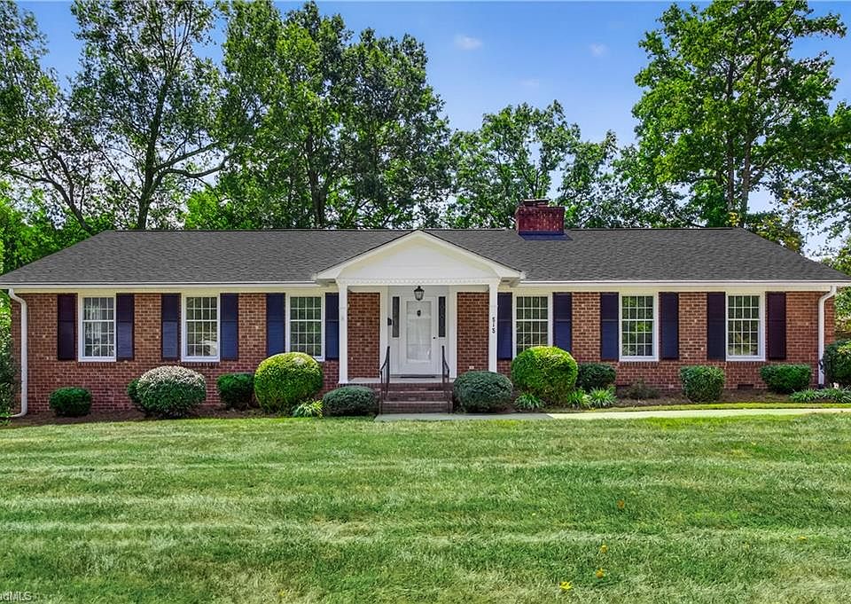 Welcome to a one-owner brick ranch with a partially finished basement near the Alamance Country Club & Don Ross golf course. Features are slate-floored entry w/large living room and adjoining dining room. Kitchen adjoins spacious breakfast room. Rear laundry room + 1/2 bath + walk-in pantry. The den offers built-in shelving and desk and gas log fireplace. HWs in den & hall per seller. Sunroom is located at rear of the house & not included in finished sq ft. 4 large brs on main served by 2 baths- one of which updated and features heated floors, solar tube lighting, granite top, tiled flooring. Separate rear sun room 10x16 ( not included in sq ft) has cooling unit installed. Basement find a large finished family room, bedroom w/bath, rec room area & unfinished spacious workshop. New roof 2024, gas hot water heater 2020. Very attractive fenced rear yard & storage bldg. No HOA!!Per appraisal Hted sq ft 2386 main flr. Basement 884 sq ft. finished.238 unfinished.