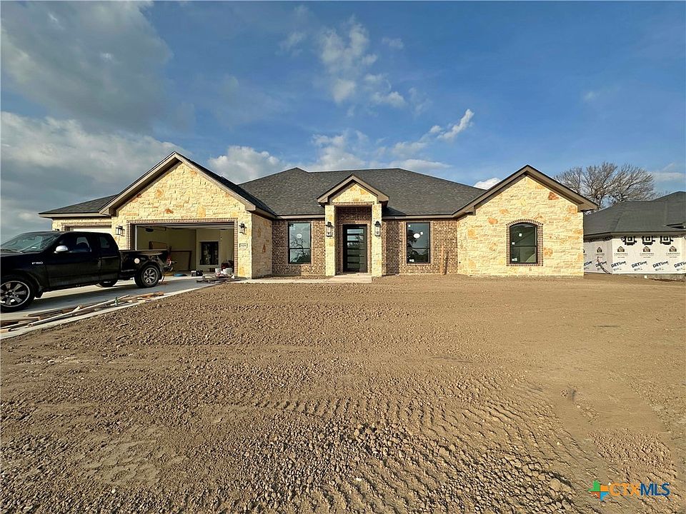 Welcome to the Clinton floor plan by Carothers Executive Homes, where sophistication and craftsmanship come together in over 2,700 square feet of refined living. A stunning vaulted ceiling with a rich wood beam accent sets the stage in the main living area, anchored by a grand electric fireplace—the perfect backdrop for both intimate evenings and elegant gatherings.
