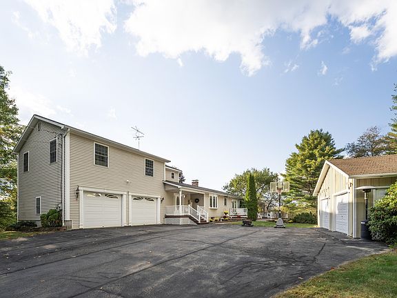 Practical spaces abound with a 2-car attached garage plus a detached 2-car garage for extra storage or hobbies. Outside, a concrete path winds towards the woods, inviting you to explore your own private sanctuary.