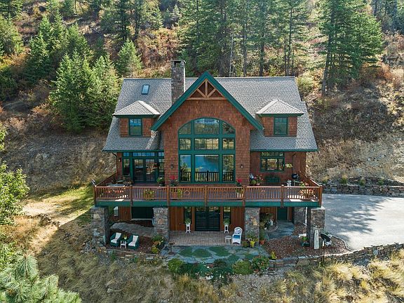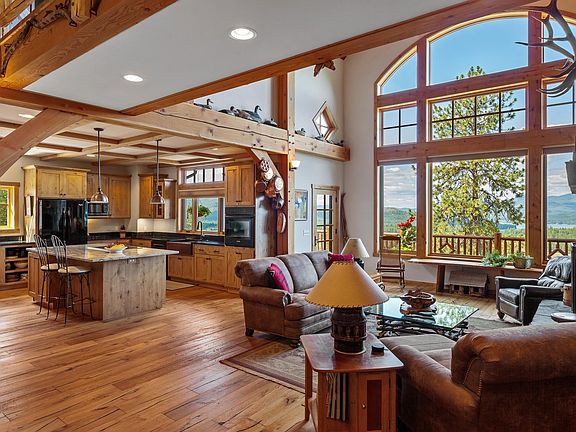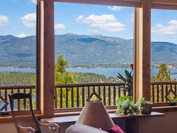 Located in Forever View Estates, this custom Craftsman Post and Beam home offers incredible views of Lake Pend Oreille, Comeback Bay, Schweitzer, and other majestic landscapes. Own this beautifully designed 4 bed, 2 bath, 2 half bath, 3764 sq ft home on 5 acres of low-maintenance land. Enjoy the convenience of a year round well-maintained road just south of the Sandpoint long bridge, only 12 minutes from downtown Sandpoint's year-round restaurants and shops. Features include high vaulted ceilings with custom wood beams, a custom stone fireplace, oversized windows, and a unique catwalk on the second floor. The large open kitchen boasts custom-built cabinets, granite countertops, and a spacious dining area. The master bedroom offers French door access to the deck, a walk-in closet, and an en-suite bathroom with double sinks. With an attached 2-car garage and breathtaking views from almost every room, this home is designed to meet the needs of all who live there.