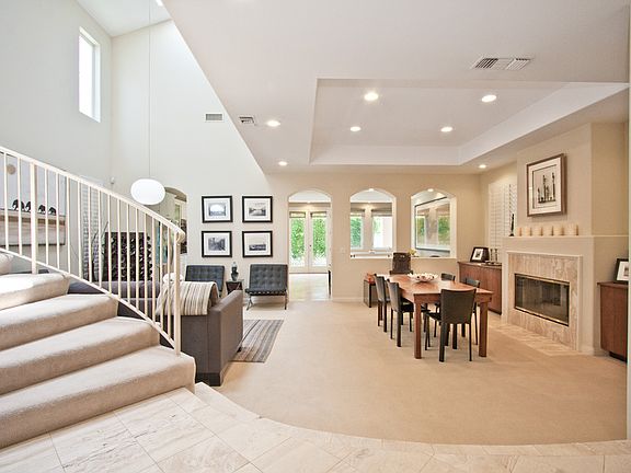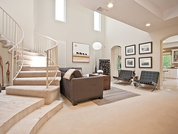 Stunning and spacious Mediterranean home in the Golden triangle. Gracious entry that leads to the exquisite, open living space with grand spiral staircase, vaulted ceilings with skylights that infuse with natural light. Gourmet kitchen with ample cabinetry, granite counters & high-end stainless steel built-in appliances. Continue upstairs to a sprawling and private master suite with its own balcony. Two large bedrooms, full of light and plenty of closet space. Additional mezzanine between master and the 2 bedrooms, open to your interpretation. Fourth bedroom downstairs great for an office or separate den. Large grassy, landscaped yard and roof-deck. A perfect family home nestled in the golden triangle!