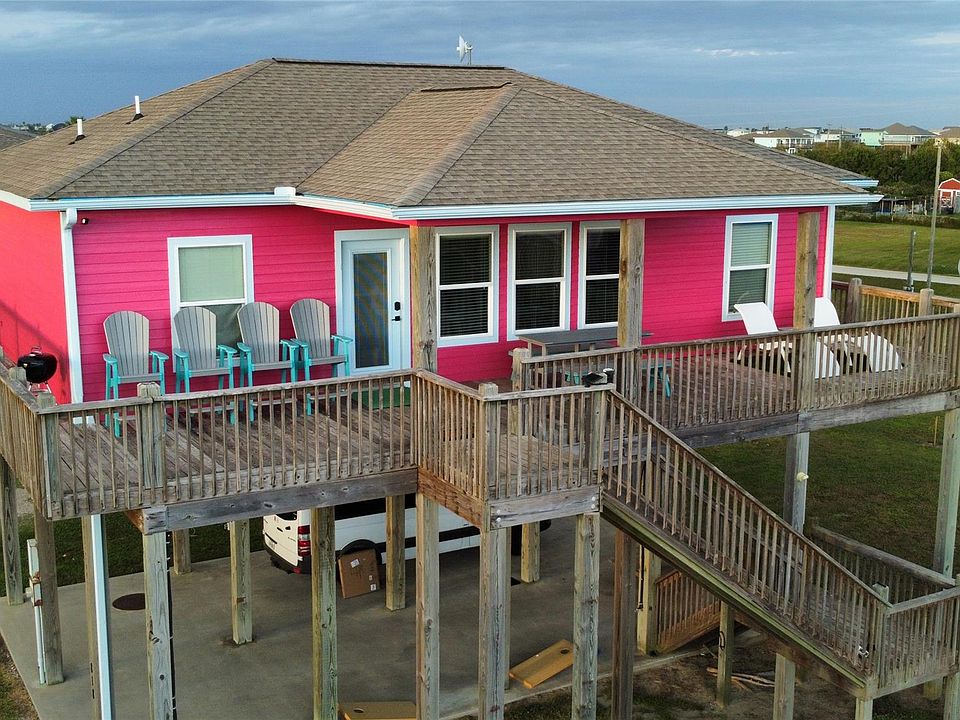 Discover your stunning beach retreat in Port Bolivar, just a short walk from direct beach access and very close to the ferry! Enjoy breathtaking views from the spacious upper deck, perfect for morning coffee on stylish Finch Poly furniture. This 3-bedroom, 2-bathroom home features an open floor plan with elegant furnishings, ideal for short-term rentals, full-time living, or your own getaway. Each bedroom has smart TVs for a top-notch experience, and the kitchen includes a new black stainless refrigerator and Maytag washer/dryer. With energy-efficient AC, fantastic Starlink internet, and ample outdoor space for gatherings, this successful five-star STR is ready for you to make it your dream escape!