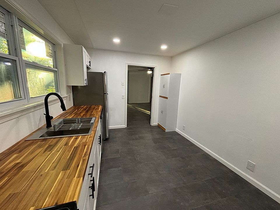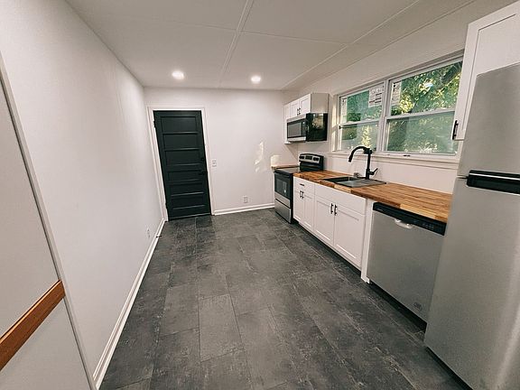 Inside, enjoy a spacious 800-SF unit with BRAND NEW stainless steel appliances, luxury floors, cabinets, and beautiful butcher block countertops. Step outside to your dedicated front porch, and revel in the elevated exterior design that sets this property apart. Parking is free and conveniently located on-site. Water bill is covered by landlord. Small pets allowed. Free laundry!