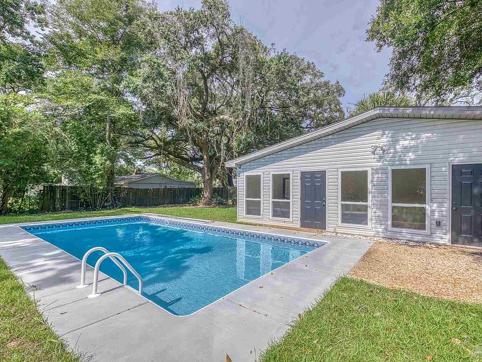Welcome to your private pool retreat—fully renovated and move-in ready. This 3-bedroom, 2-bathroom home has been transformed from top to bottom, offering 2,799 total sq ft under roof with 1,766 sq ft of heated living space and a 725 sq ft oversized 2.5-car garage that includes a dedicated laundry room. The highlight is the completely remodeled in-ground pool, featuring all new structural concrete work, liner, plumbing, pump, and fresh backyard sod—creating a turnkey outdoor oasis perfect for entertaining or unwinding at home. Inside, the updates continue with a brand-new roof, HVAC with all new ductwork and insulation, hot water heater, full electrical rewire, and all new plumbing (including sewer line and grinder pump/lift station). Additional upgrades include new windows, garage door and opener, and a freshly poured driveway. The kitchen and bathrooms shine with modern finishes, blending style and function. A charming 308 sq ft covered front porch completes the picture, offering another inviting space to relax. This property delivers the peace of mind of nearly new construction with the luxury of your own private pool in an established neighborhood.