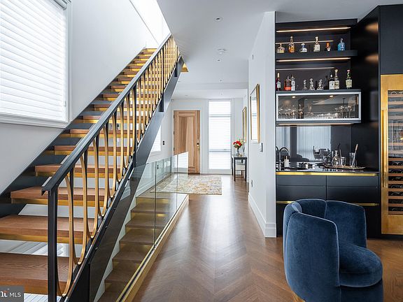 Welcome to 818 N 4th Street : Make your home among the city skyline in this elegant and chic custom penthouse with over 3,200 sq ft of living space and a 1,300 sq ft private roofdeck within a quiet boutique condominium in the heart of Northern Liberties. The unit also comes with 2-car parking in the building's attached temperature controlled garage. Low condo fees and 7 years remaining on the tax abatement ($2667/year). The home can be made available fully furnished for an additional fee (all furnishings were just recently purchased) making it turn-key ready! Acquired as an open, unfinished space, this sprawling home with 10-ft ceilings has been meticulously designed and crafted with the finest materials by its owner, the principal of a boutique design firm. Drawing inspiration from their world travels, the owners created a space that can host lavish dinner and cocktail parties as easily as casual barbecue movie nights on the rooftop deck. The oversized foyer entry opens to an expansive main level with a corner living room that takes advantage of the gorgeous bridge view and features a stunning custom stone entertainment center inlaid with brass. Relax in front of the gas fireplace while the solid oak chevron hardwood floors run underfoot and tall ceilings dotted with recessed lighting rise overhead. Designer light fixtures add chic style to the adjacent dining area, and a dramatic cocktail lounge ensures gracious hosting with a built-in wet bar and 102-bottle custom brass clad Sub-Zero wine refrigerator. Chefs will find their dream kitchen with its sleek custom cabinetry, top of the line Wolf and Miele appliances, enormous Dekton single slab center island, and dramatic full height Calcutta marble backsplash. A guest suite with a private full bath, stylish powder room and coat closet complete this luxurious entertaining level. A floating grand staircase carries you to the home's crowning glory -- an ultra private 1,300 sq ft roof deck with a commanding 360-degree view of the city skyline. Here, a full kitchen with Wolf and Sub-Zero appliances along with a 65" outdoor television welcome al fresco dining and lounging with the iconic city skyline as your backdrop. Head to the home's lower level to find tranquil private living quarters. The expansive owner's suite boasts two custom walk-in closets. No expense was spared in the 500 sq ft master bath with its floor to ceiling hand matched marble tile and Dornbracht fixtures. A huge shower, freestanding soaking tub, water closet and his and her vanities complete this incredible space. The spacious hallway opens to another guest bedroom, full hall bath with floor to ceiling marble and custom cabinetry, as well as a 4th bedroom currently being used as a media room. A well-equipped laundry room with ample storage add effortless ease to this impeccable, bespoke residence. Additional ample storage space is hidden away under the staircase. This home features extensive smart technology and home automation including Control4 with speakers throughout the residence, Nest thermostats and LeGrand custom lighting with WiFi control. Custom window treatments by Allure throughout the home are designed to allow for maximum light through the Eastern and Southern exposures while maintaining privacy for the owners. Located on a tree-lined block in Northern Liberties and ideally situated between Old City and Fishtown, this unrivaled home is surrounded by outstanding boutiques, restaurants and nightlife venues with The Piazza/Schmidt's Common within easy reach. Enjoy great community parks and gardens, including Liberty Lands and East Poplar Playground, and fantastic transportation options with the Spring Garden SEPTA station, ample bus service and the Delaware Expressway all nearby.