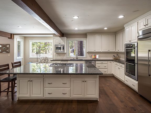 Class and style at low elevation Lakeview Subdivision! Ira Rodman built with major remodel completed in 2013. Just refreshed with new carpet and paint. Elegant mountain style with modern touches. Hardwood flooring with a spacious open kitchen opening to adjacent fireside dining area with two sliders to near level back yard. Game room flows to impressive living room with vaulted open beamed ceilings. Large family or bonus room with full bath could be a fourth bedroom. Master suite features a separate office nook and to die for bath and walk-in closet. Two additional bedrooms with shared bath. Flagstone patio leads to a park-like fenced backyard. Near level access to a large 3 car garage. This property is a select offering in a quiet location no drive-by traffic and close to Lakeshore.