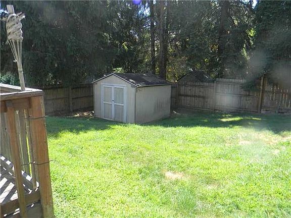 New siding and roof, newer windows, updated bathroom with new ceramic tile and fixtures. Private back yard with huge deck and large shed. Stone gas fireplace in the oversized living room.