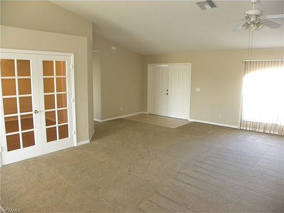 Great home with 3 bedrooms, 2 baths, plus den in Mirror Lakes. Large open floor plan, french doors into the den, screened lanai, hurricane shutters, and a fenced back. Great affordable home for first time buyer, or the investor looking for a great rental rate return. Close to Major League Baseball parks, SWFL International Airport, dining, and many more local attractions. Now you are home!