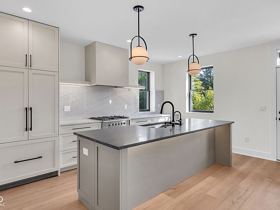 Be among the first to call The Reflection by ReDevelopment Group your home. Located steps from Lilly, Lucas Oil Stadium, Shapiro's, Iozzo's, and Greek Islands, this fully gutted and renovated residence blends modern living with an unbeatable downtown location. The open kitchen, dining, and living areas connect seamlessly to a private fenced courtyard-an ideal outdoor retreat. A spacious walk-in pantry doubles as a drop zone or coffee bar, keeping clutter neatly tucked away. Additional storage includes a four-cubby drop zone and an attached garage for convenience and an unfinished and fully insulated basement. Wide wood tread stairs draw your eye to city views, including Lucas Oil and Salesforce Tower. Upstairs, you'll find four bedrooms, including a beautiful primary suite with skyline views, a California Closet, a comfort-height dual vanity, and a walk-in shower. The upper level also includes a laundry room with utility sink. Built with excellent insulation, this home is a quiet retreat in the heart of the city, soon to be surrounded by stunning new townhomes )Inquire with agent for more info). Don't miss your chance to be part of this exciting new community!
