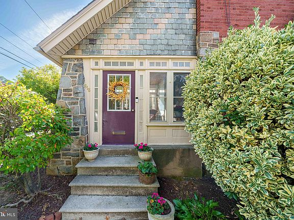 This beautiful stone and brick twin home in the sought-after Triangle area offers both charm and modern updates. Situated on a corner lot with a fenced-in backyard, the property features an attached 1-car garage. As you enter through the inviting 3-season sunroom, you'll notice the stunning beaded pine ceiling, setting a warm and welcoming tone. Inside, the spacious living and dining rooms boast 11-foot ceilings and custom in-lay hardwood floors, creating a grand and elegant feel. Pocket French doors with beveled glass separate the two spaces, while the dining room showcases crown molding and a classic chair rail for added character. The kitchen, updated in 2021, features stainless steel appliances, granite countertops, a stylish tile backsplash, and a pantry for extra storage. A convenient powder room with ceramic tile, a pedestal sink, and a deep window well is just off the kitchen. Upstairs, the craftsmanship continues with solid wood doors, in-lay hardwood floors, crown molding, and high ceilings. The third floor, complete with its own baseboard heater, offers additional storage in the dormers, making it a perfect space for a bedroom, home office, or playroom. The dry basement includes a gas water heater and a speckled painted floor, providing extra functionality. Outside, the 3-year-old Trek deck is perfect for entertaining or relaxing. This home is a perfect blend of timeless character and modern convenience, ready for you to move in and enjoy.