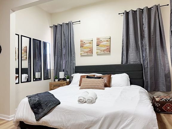 Discover a 1-bedroom, 1-bathroom apartment in The Cardinal, Evansville, IN, perfect for travelers or professionals. The cozy bedroom features a king-size bed and a Smart TV, while the inviting living area includes everything you need to relax or catch up on work with fast Wi-Fi. The fully equipped kitchen and access to in-building laundry ensure a hassle-free stay. Close to shops and essentials, this apartment offers a convenient and comfortable home base for any visit. Built in 1906 and fully renovated in 2024, The Cardinal building offers 7 unique apartments professionally designed by local artists to make every guest's experience comfortable and enjoyable. This unit is a main floor apartment. The cozy bedroom features a king-size bed and a Smart TV, while the inviting living area includes everything you need to relax or catch up on work with fast Wi-Fi. The fully equipped kitchen and access to in-building laundry ensure a hassle-free stay. The building offers free parking for all guests and access to a 24/7 laundry room on premises. Conveniently located by 1st Avenue close to a variety of Evansville's downtown restaurants, shops, and attractions. Guests will have access to the entire apartment. The inviting living area includes everything you need to relax or catch up on work with fast Wi-Fi.