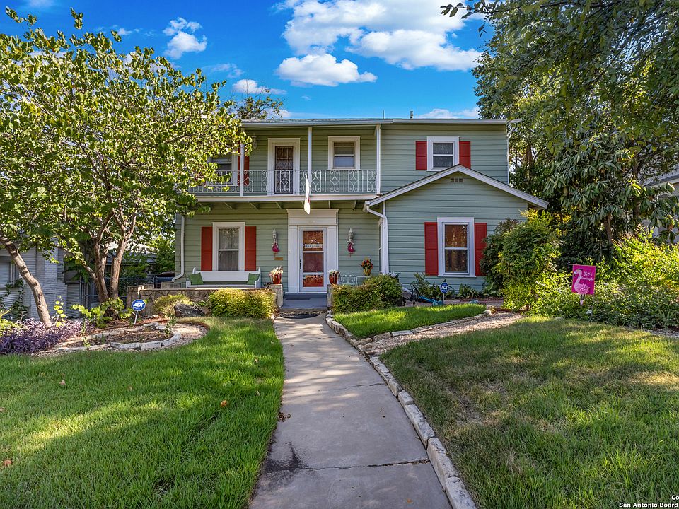 Step into timeless charm with this inviting two-story home located in the heart of San Antonio's Beacon Hill neighborhood. From the welcoming front porch to its vintage details, this residence blends classic character with modern updates, featuring original hardwood floors, crown molding in the living and dining rooms, a cozy living room with a fireplace, and spacious living areas filled with warmth and versatility. The updated kitchen offers sleek cabinetry, stainless steel appliances, stylish finishes, crown molding, and a unique decorative metal ceiling that adds character and elegance, while multiple bedrooms and a wood-paneled study with built-ins provide comfort and function. A convenient half bath is located downstairs for guests. Adding even more value, the property includes a guest/back apartment with full plumbing-a 1 bed, 1 bath living space perfect for extended family, rental income, or a private office-that can also be converted back into a garage if desired. Outdoors, mature landscaping, garden space, and private areas for relaxing or entertaining are enhanced by a patio with two ceiling fans and a barbecue area, making it ideal for year-round gatherings. This unique opportunity offers a blend of Beacon Hill charm with modern-day convenience.