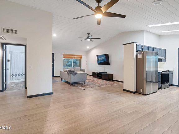 *Prime Location*Fantastic opportunity w/ frwy access & centrally located to countless amenities*So much to love.....no HOA, RV/backyard access, newer interior paint, incldg painted kitchen cabinets & newer LVP in great room, kitchen & 1BR, tile in BA's, carpet in 2 BR's, newer vanity cabinets in primary & secondary bathrooms, ceiling fans in GR & all BR's*HVAC & windows replaced 2023*Add'l attic insulation added 2021*H20 heater repl. 2022*Wiring for EV in Garage & 240v outlet on rear patio installed*Stainless kitchen appliances incl. fridge, microwave inthe free-standing storage cabinet*Washer/dryer convey*Backyard oasis w/ beautiful sparkling pool & paver surround, extended cov'd patio, synthetic grass, outbldg(for studio or storage), concrete pad at sideyard & alley access*Welcome Home*