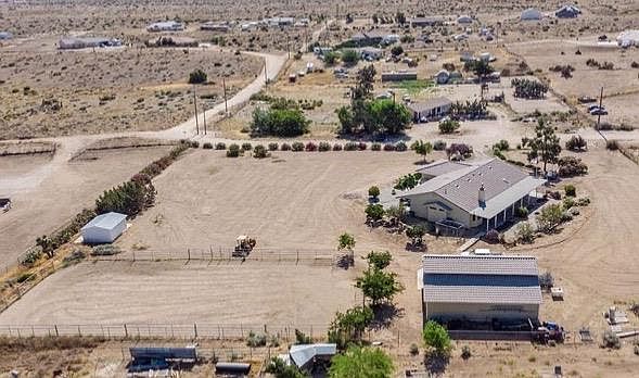 Got Horses!!! Need a Horse Stable and Barn with workshop. How about an Leveled Arena. This home is all ready for the equestrian. If you are looking for a bigger home this one is 2424 square feet with 4 bedrooms and 3 full baths. It is a split floorplan with 2 master bedrooms that have en-suite bathrooms. The bigger bedroom has a en-suite bathroom with a seperate tub and shower and Double sinks. On the other side of the home is the second master bedroom with 2 other bedrooms and the third full bath. The entry, family room, dining area and kitchen all have easy to clean tile flooring. The Kitchen has stainless steal appliances that do stay with the home. Home has newer carpet in the Living room, formal dining area and bedrooms. The home has recently been painted inside. The outside of the home is on 2.29 acres and does have fencing around it. The barn is good size with 4 horse stalls, tack room and office. It has a tile roof also has electricity (220) and water. Talk about a view you have one both in the back and front. Backyard has a lovely view of the mountains. Great area to go horseback riding or if you have off road vehicles. You can go right from your home. The front of the house you get full city lights. This home also has great internet service. It is all installed with fiber optics up to 1000 MPS. There is a demand pump for instant hot water. No wasting of water waiting for the cold water to get hot. This is truly a remarkable well keep home.