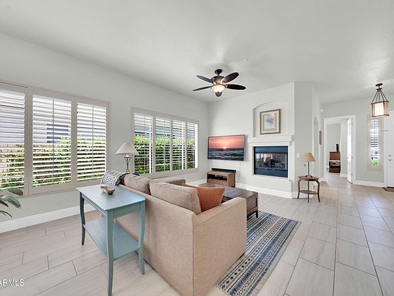 Welcome to this stunning 2-bedroom, 2.5-bathroom townhome nestled in the peaceful, gated Vintage community of Scottsdale. Tucked away in a quiet corner with no rear neighbors or buildings behind, this rare single-unit offers unmatched privacy and tranquility—plus the added bonus of a part-time neighbor next door. Step inside to find dual master suites, a spacious open layout, and a flexible den/office space. The heart of the home is the gourmet kitchen, outfitted with rustic custom cabinetry, granite countertops, a Sub-Zero fridge, GE Monogram stainless steel appliances, and a massive gas stove that will thrill any home chef. The elegant 2-sided gas fireplace adds warmth and charm to both the living and dining areas.Additional upgrades include a washer and dryer less than a year old, a brand-new dishwasher (just 2 weeks old!), and beautiful travertine flooring throughout. The private backyard is perfect for entertaining guests or enjoying quiet Arizona evenings under the stars.Located just minutes from top-tier shopping, fine dining, hiking trails, and major freeways, this home blends luxury with convenience.Don't miss your chance to live in one of Scottsdale's most desirable communities!