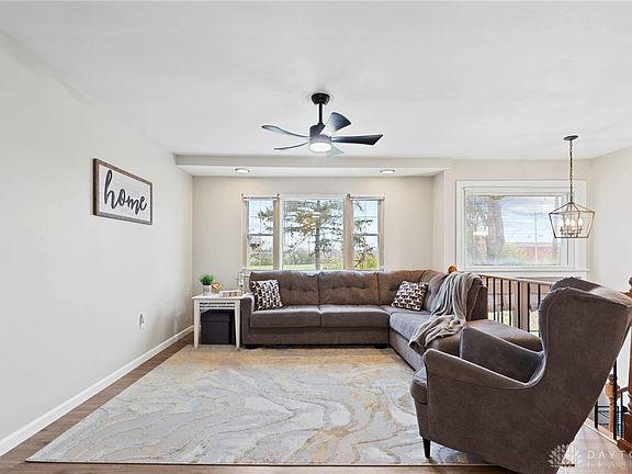 Welcome to your slice of country living—where charm, comfort, and convenience meet. Located in German Township and Miamisburg School District, this beautifull 4–5 bedroom home offers 2,067 sq. ft. of finished living space on a generous ½-acre lot, providing the perfect balance of peaceful rural living paired with the convenience of nearby amenities. Step inside to discover an inviting main level featuring LVP flooring throughout and an updated kitchen complete with quartz countertops, tiled backsplash, stainless steel appliances, and a seamless flow into the adjoining dining room—ideal for gatherings and everyday living. Both bathrooms were also updated in 2024, adding modern comfort and style. Replacement windows throughout enhance energy efficiency and natural light. The spacious basement expands your living options with a large rec room, two bedrooms, an office, laundry area, and a full bath—perfect for guests, multigenerational living, or a home workspace. Outside, unwind on the covered deck overlooking the large, fenced-in backyard with picturesque views of the countryside. Whether you're entertaining, gardening, or simply enjoying the tranquil surroundings, this outdoor space has something for everyone. Major mechanical updates offer peace of mind, including: Roof (2018), Water Heater (2020), Gas Furnace (2022), A/C (2024), Refrigerator and Dishwasher (2025). If you're searching for the comfort of country living without sacrificing proximity to town, this home is the perfect match. Move-in ready and full of charm—schedule your showing today!