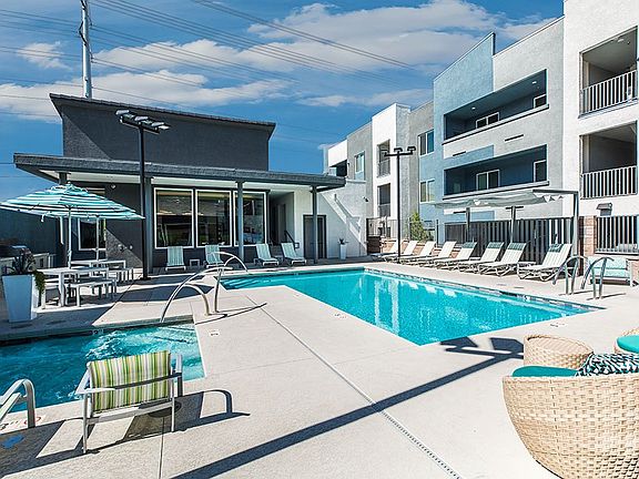 - Exterior features: , Building-wide Wireless, Complimentary daily refreshments and coffee bar, Cox Quick Connect, Designer-selected interior colors schemes, Energy efficient low-E dual glazed windows, Frameless medicine cabinet, Large soaking tub and shower with rain-style head, Linen, coat and storage closets*, Night Patrol, One and two bedroom floor plans, Oversized closets, Package Receiving, Print & Connect, Private patios and balconies*, Recessed lighting in kitchen, Reserved covered parking*, Resident Activities, Smoke detectors, Soaring 9' ceilings*, Sprinkler System, Stylish cabinetry with polished chrome hardware, USB Outlet in kitchen, Welcoming entry and common area landscaping