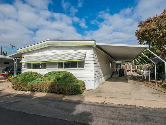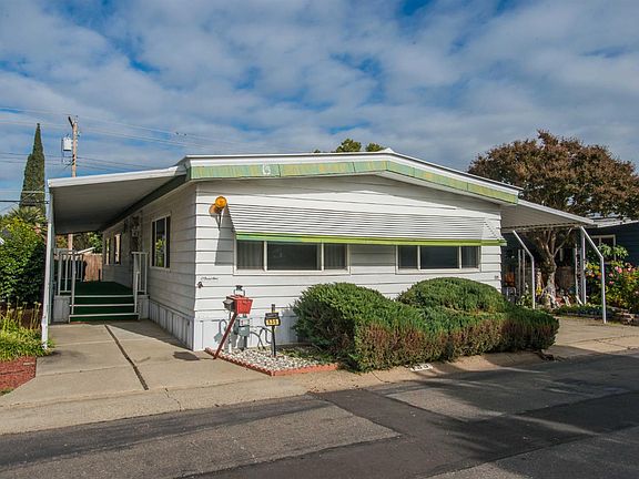 Charming Home in a 55+ Active Community! Enjoy comfort and convenience in this well-maintained 2-bedroom, 2-bath home featuring a spacious family room with a cozy fireplace. Relax on the newly updated deck or take advantage of the high, wide carport with an 11x17 storage shed. A sturdy metal ramp provides easy access to the home perfect for added convenience or accessibility needs. Recent updates include a 2018 roof, PG&E upgraded HVAC and water heater, and updated plumbing. The kitchen offers a gas cooktop, stainless double sink, pocket door, 2023 Maytag oversized refrigerator with double doors freezer on the bottom, 2023 Maytag stainless steel dishwasher and large pantry storage. Nearly every window is dual-pane for energy efficiency, and five solar tubes fill the home with natural light. The primary suite features elegant large tile flooring and an updated walk-in shower, creating a stylish and comfortable retreat. There is a massive updated closet storage system in the primary bathroom and bedroom. Conveniently located near the freeway, shopping, and popular dining options, this move-in-ready home is packed with upgrades and nestled in a vibrant, active 55+ community. A must-see!