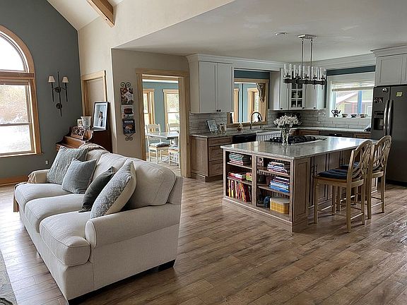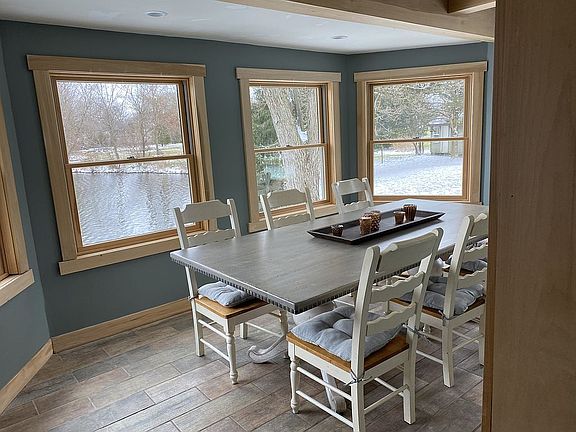 Built in 2017, this beautiful 1600-square-foot home sits on an acre of property with approximately 300 feet of waterfront. This cottage-style home has an open floor plan. The great room has a cathedral ceiling, incredible cedar trusses, and a wall of natural wood windows facing the pond. The adjacent kitchen includes a seven foot island with seating for two, gas range, and multiple storage drawers and cabinets. Plenty of storage in an eight-foot walk-in pantry lined with floor-to-ceiling shelves. All window bonus room/dining area facing the pond. The primary bedroom has an eight-foot door wall to a covered maintenance-free porch facing the pond. An en suite bathroom with a soaking tub and an eight-foot walk-in shower. A second bedroom includes a half bath.