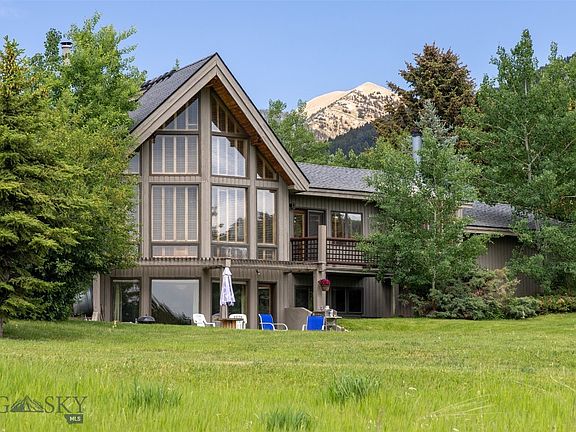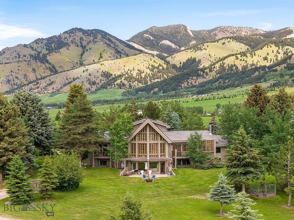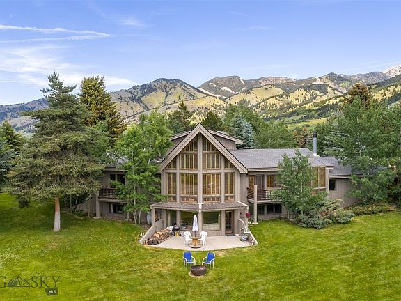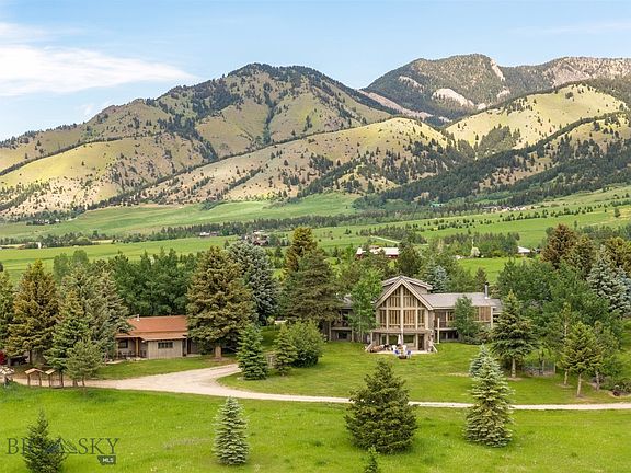 Nestled at the base of the stunning Bridger Mountains, this custom-built home offers the perfect blend of luxury, privacy, and Montana’s natural beauty. Set on 4.3 acres of mature, extensively landscaped grounds, the property features unobstructed views, abundant wildlife, and direct access to nature with the nearby Sypes Canyon trailhead. The main residence includes 5 bedrooms and 4.5 bathrooms, with two distinct living areas ideal for entertaining or multi-generational living. A spacious primary suite provides a peaceful retreat, while custom cabinetry, solid wood doors, and large windows showcase timeless craftsmanship and fill the home with natural light. The walk-out daylight basement features 2 bedrooms, 2 bathrooms, a family room, kitchen, and laundry. In addition to the main house, a beautifully designed detached guest cabin offers approximately 2,200 square feet of versatile living space. With 3 bedrooms, an office/den, 2.5 bathrooms, a kitchen, dining area, and living room, this guest home is completely private with its own driveway. Like the main residence, it features custom cabinetry and high-end finishes throughout. Enjoy the serenity, space, and exceptional craftsmanship of this remarkable property—ideally located in one of the most sought-after areas of the Gallatin Valley.