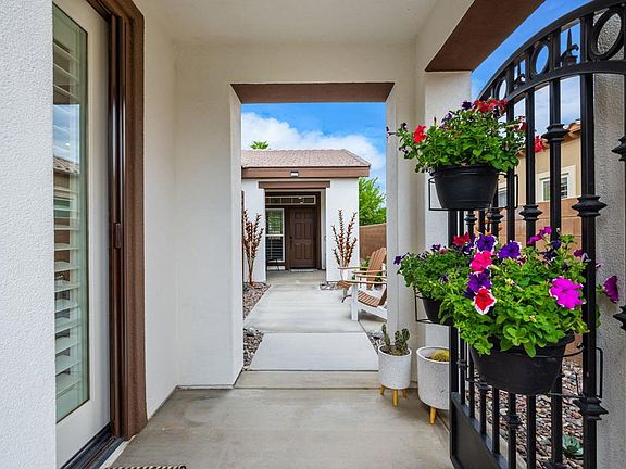 Absolutely stunning and meticulously upgraded, this sought-after Oasis plan is perfectly positioned on an oversized 8,276 sq. ft. homesite within the prestigious Trilogy La Quinta, a premier 55+ resort community. Featuring 3 bedrooms and 3 baths, this exceptional residence impresses with elegant quartz countertops throughout and a seamless blend of luxury and comfort. A charming Tuscan facade and wrought-iron privacy gate welcome you into a tranquil front courtyard, setting the tone for the refined interiors. Upgrades include all new LVP flooring, new landscaping in front and courtyard, fresh interior paint, paver path on side of home, all new window screens, added 21 can lights throughout and all new ceiling fans, including exterior. The great room showcases panoramic rear yard views, plantation shutters, custom built-in entertainment center, and stylish plank flooring, creating an inviting space for relaxation and entertaining. The gourmet kitchen is a showstopper, boasting stainless-steel appliances, white shaker cabinetry, waterfall-edge quartz island, designer backsplash, and custom coffee/beverage station with folding doors, farm sink, and illuminated glass uppers. The primary suite offers a peaceful retreat with bay window, patio access, and a spa-inspired bath featuring floor-to-ceiling tiled shower, dual vanities, and a generous walk-in closet. Guests will love the attached casita, complete with beverage center, mini-split A/C, built-in workstation, and private bath. Additional highlights include a four-foot extended garage with epoxy flooring, ample storage, and mini-split A/C. The expansive rear yard features an extended covered patio, concrete decking, and endless potential to create your own private pool or outdoor sanctuary--all while enjoying access to Trilogy's renowned Santa Rosa Clubhouse amenities. This home is a true desert gem--schedule your private tour today!