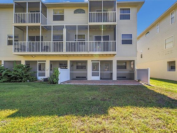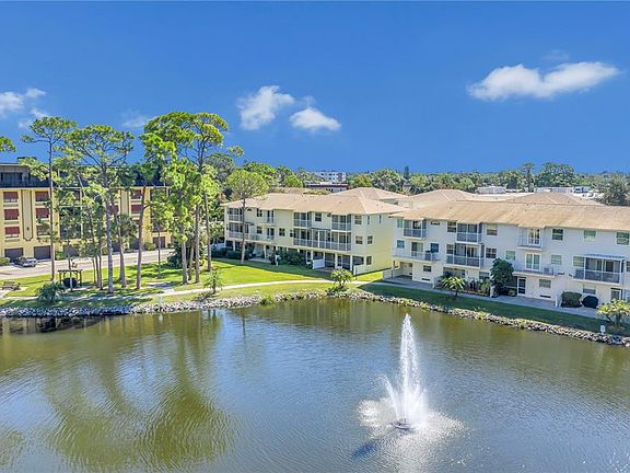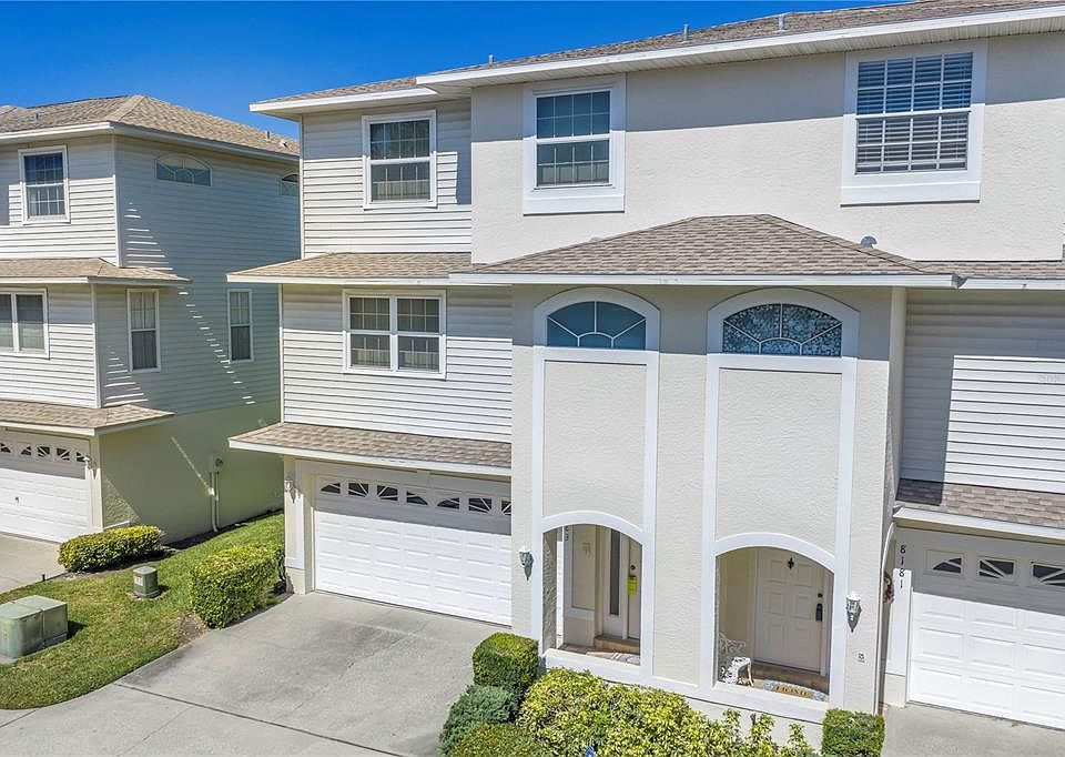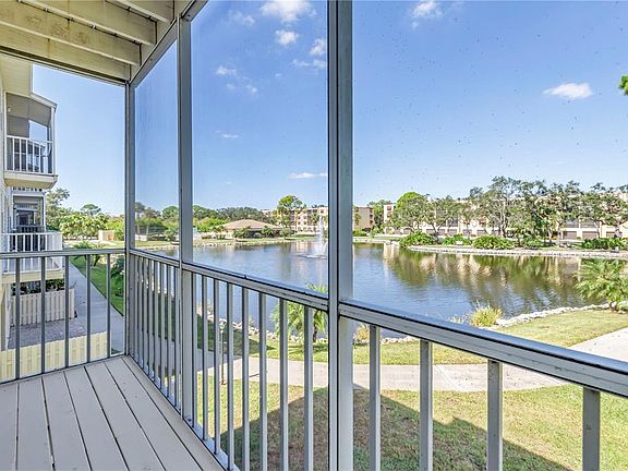 Rarely available lakeside townhouse, 3 bedroom, 3 bath, IMMACULATE CONDITION and views of gorgeous 30-foot fountain in charming lake from all three levels! Energy efficient windows and doors, and Hurricane rated garage door! Step out on your private screened balcony off the primary suite to start the day with the soothing sounds of fountain. Stroll along the sidewalk surrounding the lake that leads to the recreation building with Gym, entertaining space with a full kitchen, library and heated salt pool and heated Spa! Enjoy a relaxing game of shuffle board or play a game of tennis. Tastefully updated kitchen featuring solid surface counter tops and newer stainless-steel appliances makes any chef happy as you prepare a quick bite of full gourmet meal. Spacious formal living room could also serve as an intimate private dining room. Kitchen opens to the Great room providing ample space the for entertaining guests. Enjoy the natural light from the 2 screened balconies. Open the large sliding glass doors during the fall and winter to enjoy a cool breeze throughout your home. All 3 bedrooms are on the upper floor, two with walk in closets. Pest control with tubes in the wall. Newer A/C 2020. One of the best surprises is the INCREDIBLY OVERSIZED GARAGE, big enough for two large vehicles AND a huge workshop area with plenty of storage. Centrally located- 10 minutes to Gulf beaches, 20 minutes to downtown St. Pete. Close to Bay Pines VA Medical Center. Walking distance to Publix grocery store.
