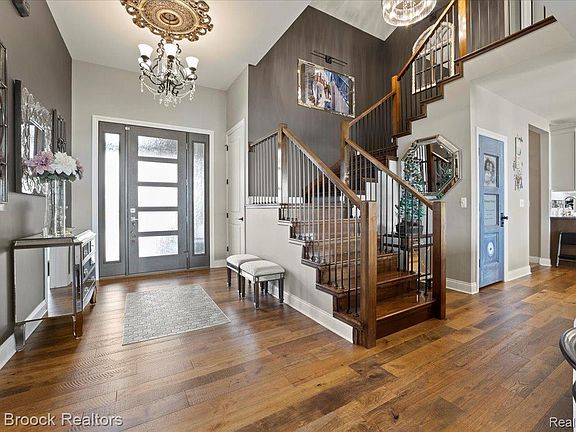 Experience the luxury of lakefront living with this magnificent custom built waterfront home. Perfectly nestled on coveted all sports Woodland Lake in one of the most sought after areas of Brighton, this truly one of a kind residence boasts an unparalleled 76 ft. of water frontage on a picturesque lot. The moment you walk through the front door you'll be mesmerized by the impeccable detail put into this home. Soaring ceilings greet you over striking custom flooring. Strolling through the immense great room, stunning lake views surround you at every turn. Your custom designed chef's kitchen has incredible space. Featuring top of line Kitchen-Aid appliances, custom cabinetry, massive range, an expansive custom island for entertaining, fireplace, lake views from every window, and a walkout that opens to a gorgeous terrace, it's an entertainers dream. The first floor Primary Suite is a sight to behold. Oversized and complete with it’s own incredible lake views, custom walk-in California closet and massive bath tiled floor to ceiling, you’ll never want to leave. The second level in this home is equally as impressive as the first. Featuring an open and flowing layout the second level hosts large bedrooms, lake views, full bath and a bonus room for a variety of accommodations. Not to be outdone, the exterior of this home is impeccable. Trex decking is front and center surrounding by Master Gardner designed landscaping, brilliant professional lighting, Gazebo, custom fireplace, and private lake views, it is the perfect place to host the largest event or most intimate gathering. Everything in this home is newer and with one of the largest and best positioned lots on the lake it won’t last long, come see it now before it’s gone!