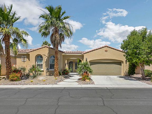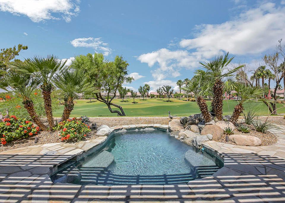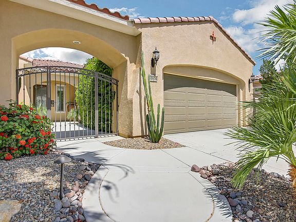 Open for next season. This fabulous Single Family Detached golf course home in popular Sun City SH offers a unique casita with its own full bath, refrigerator and coffee maker, making it ideal for hosting guests. The property also offers a magnificent view of the golf course and San Jacinto/San Bernardino mountains from the beautiful desert garden backyard and patio, promising ultimate relaxation and tranquility. Enjoy a refreshing dip in the pool/heated spa, watch play on the fourth green of the championship course, and dine under the large, covered area that's also equipped with power shades. The recent facelift of the home showcases a contemporary design with bright and inviting spaces throughout. In this open floor plan, the gourmet kitchen flows directly into the living room that boasts a home theater to enjoy from a set of power reclining leather sofas, perfect for relaxing and spending quality time with family and friends. This home also includes a very bright and spacious office, perfect for those work-from-home days or quiet study time. This community offers 2 golf courses, tennis, pickleball, 2 pools/spas with fully equipped gyms, clubhouse dining, and so many indoor activities for you to join. With 3 bedrooms, 3 bathrooms, and den/office, this immaculate family home will provide you with the comfort and luxury that you have been seeking. Use of the golf cart can be available with a signed liability form and a tenant insurance. $7500 for Jan-April 2026.
