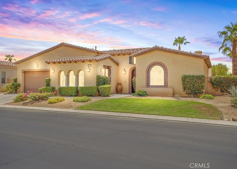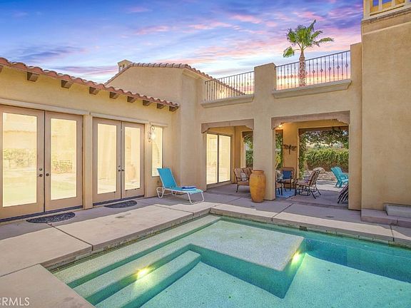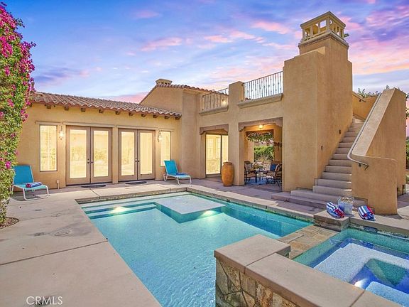 This one has it all: pool, baja shelf, spa, firepit, outside loft, covered patio with 7 glass doors opening to amenities. In cozy Carmela gated community, this professionally designed home has 4 beds, 3.5 baths, custom tile floors, various HD TVs, attached casita, large kitchen with island and pantry, great room, formal dining and living room, spacious master suite, guest rooms, and expansive outdoor seating. 3-car tandem garage offers extra storage/golf cart space. Don't miss this gorgeous and private single-story home with dream backyard oasis for your next vacation! The ultimate luxury, ideal for couples, solo travelers, and families/friends. Enjoy excellent amenities, central location, and peaceful neighborhood. We prioritize cleanliness and safety. A private property for lounging and relaxing.