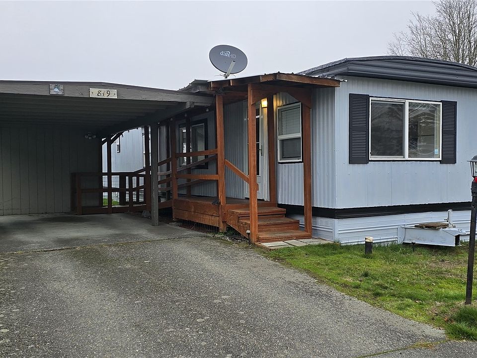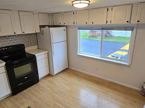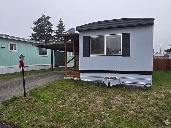 This  All Ages park and attractively priced 2 bed 1 bath 1974 mobile features newer vinyl flooring, updated kitchen cabinets and an attractive accent wall in the living room. Home has some newer plumbing in kitchen and bath. There are 2 bedrooms including a primary with its own entrance to the bathroom. All appliances stay including dryer and newer washer. Outside, you'll find a fully fenced yard, a large storage shed and covered sitting area as well as parking for 2 cars and a carport for 1. Manufactured home financing is available. Park approval required.