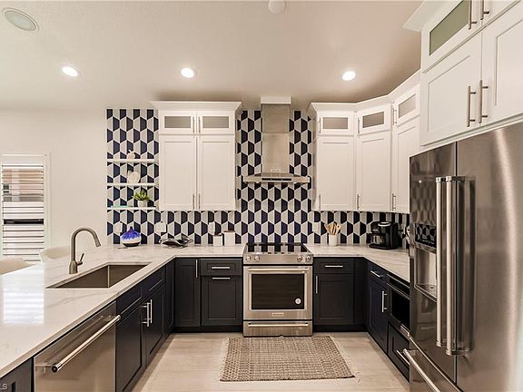 This beautifully redesigned home, just a few blocks from Vanderbilt Beach, feels brand new with its high-end finishes and modern updates. The home features new hurricane-impact doors and windows for added security, and large 10-foot sliding doors that open to a spacious lanai. The exterior has been enhanced with fresh landscaping, an irrigation system, and a new brick paver driveway. Inside, you'll find elegant furnishings from West Home Collection, El Dorado, and City Furniture, complemented by high ceilings, new doors, and wood-tile flooring throughout. The cozy great room is anchored by a designer brick wall and an electric fireplace, and all windows are framed with custom plantation shutters and automatic blinds. The gourmet kitchen boasts quartz countertops, shiplap accents, high-end appliances, and a hidden wireless charging station for convenience. The outdoor living space is a perfect retreat, with a spacious deck, outdoor kitchen, pool, spa, and a relaxing chickee hut ideal for lounging or entertaining. Located just blocks from Vanderbilt Beach, this home is also close to fine dining and shopping at the Mercato, offering the perfect blend of luxury, comfort, and convenience. Don’t miss your chance to make this beautiful property your own.