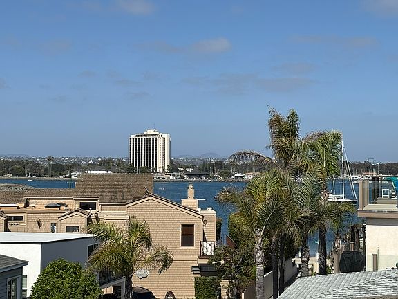 This is it! The perfect VIEW summer home in South Mission Bay! Fully furnished, featuring 3 bedrooms, 2 baths, and a giant rooftop deck with 360-degree views! Stunning views on the perfectly set up deck, watch the palm trees sway, the pelicans flying by, the SeaWorld fireworks, and the twinkling lights of Point Loma, out to the east mountains and north to Pacific Beach and La Jolla! Enjoy the lounging sofa and chair with a fire pit table or BBQ as you watch the sunset and eat at the picnic table. The remodeled home features an open kitchen, living room, and dining room with beautiful luxury vinyl plank floors and new paint throughout. Plenty of space to relax on the comfortable sofa and chairs, and watch a movie or play some games. There is a dining table that seats 6. The kitchen has nice granite counters, a breakfast bar with very comfortable seating and everything you need, a coffee maker, and all kitchenware. Area VIEWS from the kitchen and living room. The French door off the living room leads you to the rooftop deck. Step into the huge primary bedroom with a king-sized bed, a step-out balcony, and a walk-in closet. There is a spa-like bathroom with a relaxing soaking tub and a really nice shower with a rain showerhead and a built-in bench. The 2nd bedroom has a queen-sized bed and a private bathroom with it's own bathroom and a walk-in closet. The 3rd bedroom is small and has a twin-size pull-out sofa and a desk so it could be used as a combo bedroom/office or a guest room. It has vaulted ceilings and a skylight! There is a full sized washer and dryer and a garage! This truly is the perfect beach lifestyle you have been looking for! Steps to the Bay and only 1 block to the ocean. Quiet area of South Mission Bay, bike or walk along the boardwalk. Walk to the coffee shop, the market, the awesome taco shop, or The Pennant bar & The Beachcomber. Shorter term, only 1 month to 4 months. Internet, water, trash, and sewer are included. Fully furnished with furniture, linens, towels, and kitchenware. Just bring your toothbrush and clothes! Dog friendly on approval. Great for a summer home!
