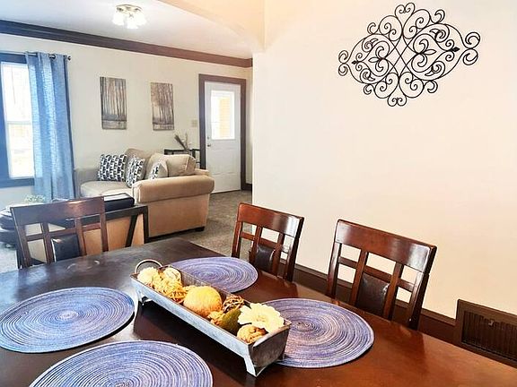 This unit is the lower of a duplex in a great residential neighborhood. Private entrances at the front and rear with secured digital lock. The entry leads into the living area, with access to a front airing porch, sitting area, living room. Take in the gorgeous trim and eclectic traditional furnishings. The dining area has stunning original maple floors, and is made for friends and food with dining for 6 and a game/entertainment stocked buffet with leaded/stained glass doors.