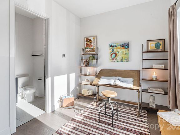 Location is everything, and this stunning 2023 townhome in the heart of NoDa delivers! Just steps from vibrant North Davidson Street and half a mile to the light rail, this 2-bedroom, 2.5-bath gem blends modern design with artistic flair. The first floor features a versatile en suite bedroom—perfect for guests, a home office, or a roommate setup—along with access to the rear-entry garage. The second floor offers an open layout for living and dining, complete with oversized sliding doors that leads you out to a modern wood finished, generous sized, balcony that will flood the space with natural light.